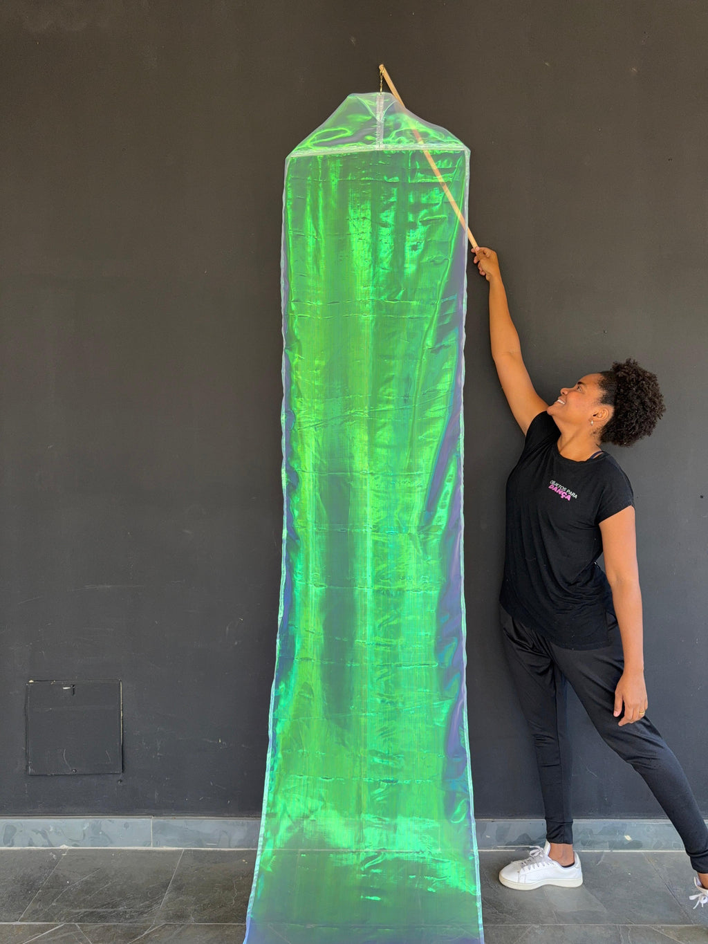 A Flag Pipa Furta-Cor Branca é confeccionada em organza leve e translúcida, com acabamento iridescente que reflete tons suaves conforme a luz — criando um movimento puro, celestial e cheio de brilho. Seu efeito furta-cor transmite leveza e glória, tornando-a perfeita para ministrações de adoração, santificação e celebração da presença de Deus.